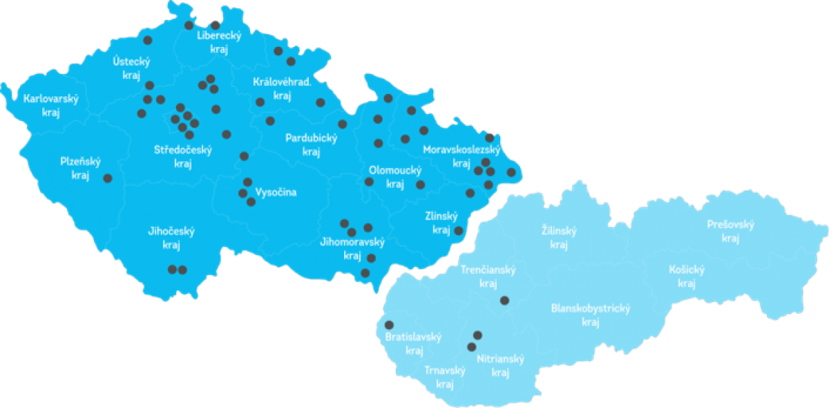 Jsme Vám nablízku. Najdete nás v Praze, Kolíně, Ostravě i Olomouci.